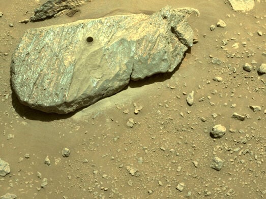 Perseverance нашел кусок скалы с высоким содержанием никеля и железа. Из такого материала состоят ядра планет и астероидов и на поверхности Марса им не место, разве что это метеорит. Яйцеголовые пока не могут с полной уверенностью утверждать, что это метеорит или что-то иное, пока не доставят образцы на Землю.