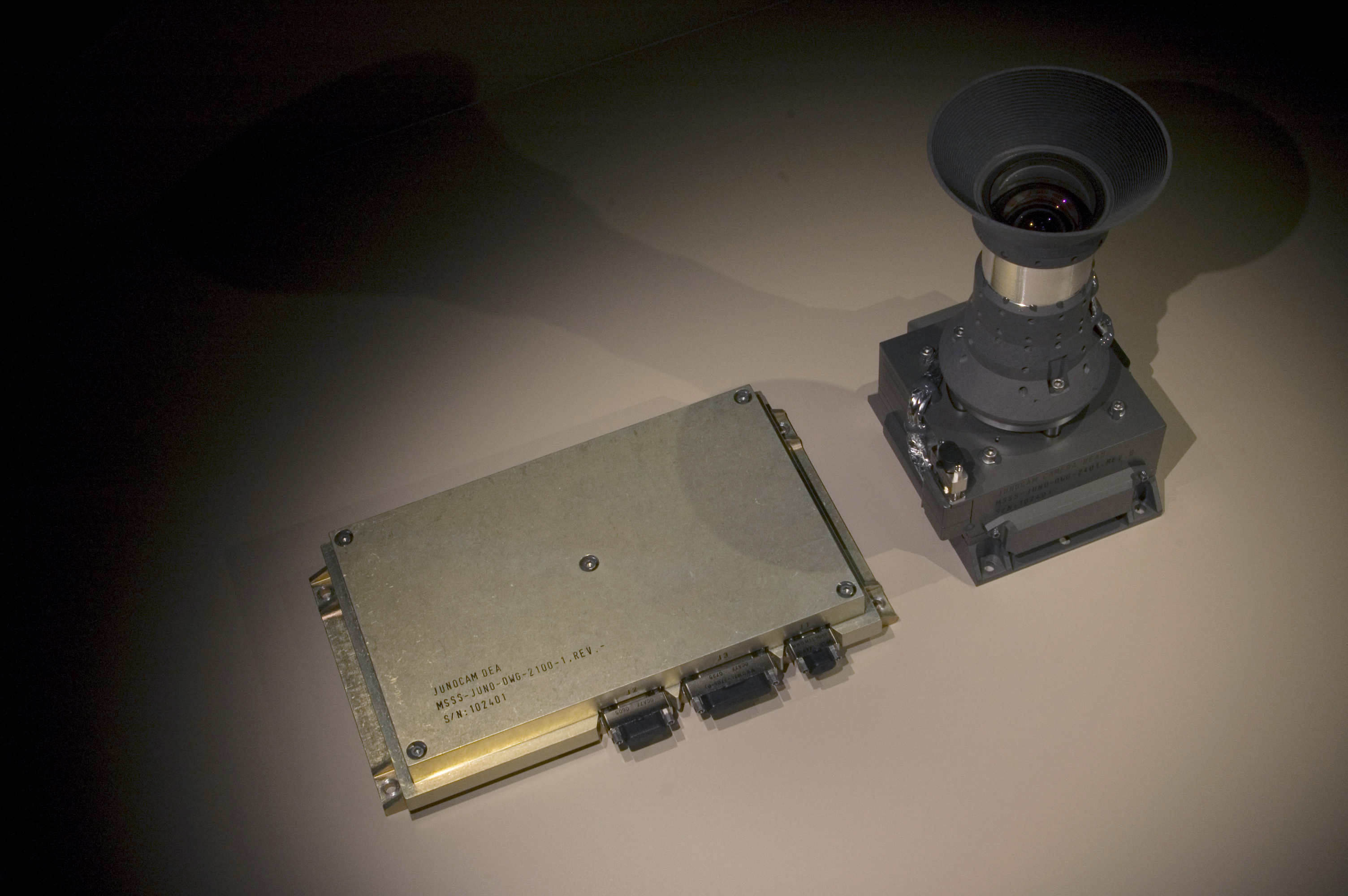 JunoCam — это камера, работающая в видимом диапазоне. Оптический блок камеры расположен снаружи радиационного убежища с титановыми стенками, которое защищает чувствительные электронные компоненты многих инженерных и научных приборов JUNO.