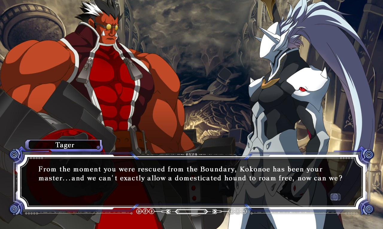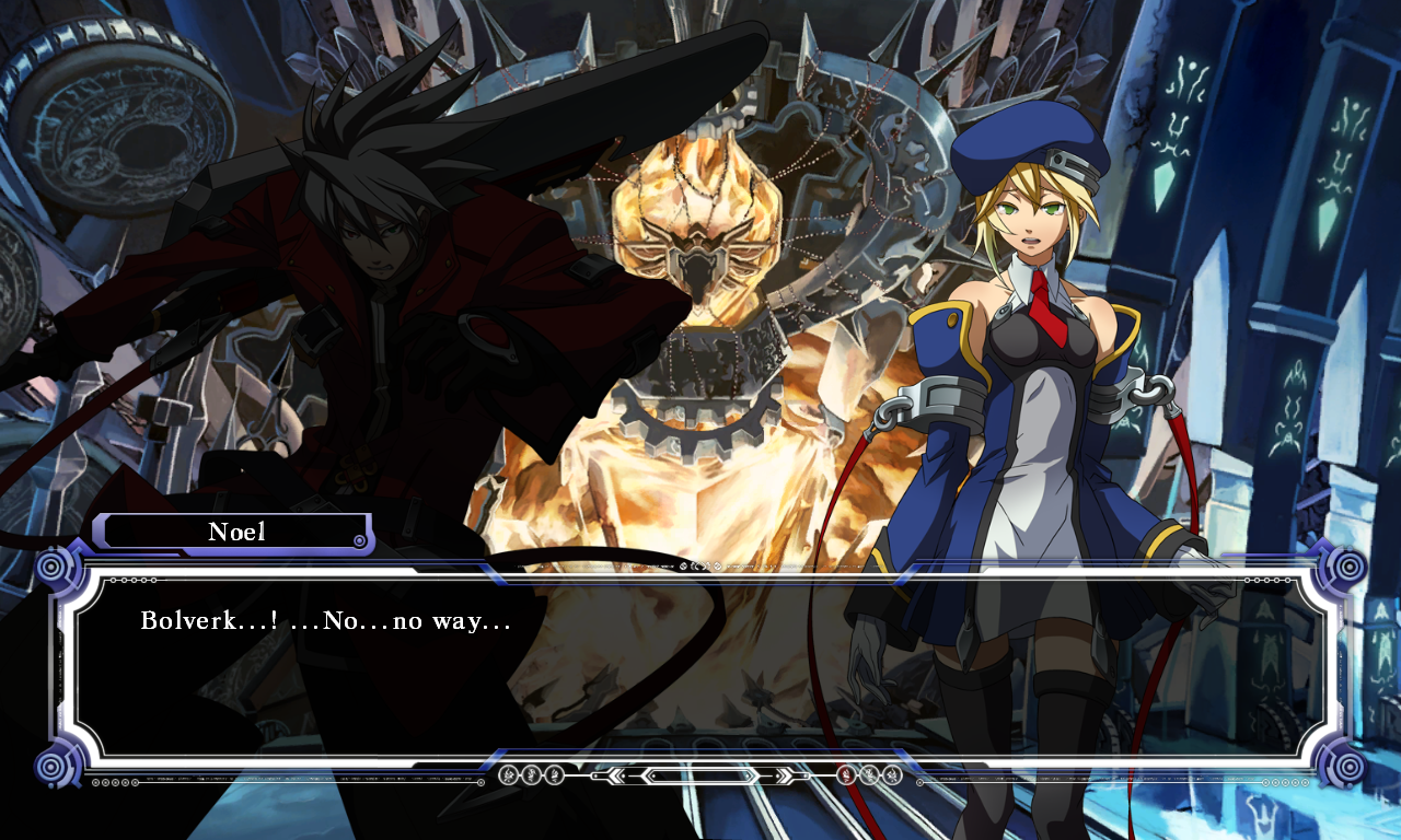 In a time now long past, mankind faced extinction at the hands of the “Black Beast,” a creature that appeared out of the darkness. The Beast was possessed of an awesome power, and it appeared that the time of man would soon be at an end. It was then, in humanity’s darkest hour, that six heroes of unknown origin came forward to defeat the Beast. They brought with them the ancient power of “magic,” which they freely shared with mankind. Turning their ingenuity to the formation of new, more powerful weapons, humanity discovered a process by which they could infuse their own technology with the power of ancient magic. It was in this way that humanity created the “Armagus” and discovered a power far beyond what magic or technology alone could have given them. With this newfound power, mankind once again confronted the Beast, with the six heroes fighting alongside them. After many long, blood- soaked battles, the Beast finally fell, ending what would come to be known as the “First War of Magic.” The heroes who had fought beside human warriors in the First War of Magic were immortalized for their deeds and in time came to be known as the “Six Heroes.” An organization was formed during the First War to regulate the use of the “Grimoire Armagus,” the Armagus training texts. This “Novus Orbis Librarium,” and the power it wielded with the Grimoire Armagus, brought about great advances across the spectrum of human technology. These gains threw mankind into a vast and all-encompassing reconstruction. Decades passed. The Librarium established itself as a dictatorship and Armagus became the deciding factor in nearly all of humanity’s affairs. This led to a large socioeconomic gap between those who could wield the power of Armagus and those who could not. Tensions began to flare, and before long a rebel organization calling itself the “Ikaruga Federation” appeared, defying the totalitarian authority of the Librarium. With the creation of the Federation, angry thoughts became open hostilities and the “Second War of Magic” began. It was this conflict, which also came to be known as the “Ikaruga Civil War,” that saw humans using the power of Armagus against one another for the first time. The Second War came to a close with the destruction of the Ikaruga Federation. Afraid of further conflict, the Librarium consummated its subjugation of the populace by issuing the following decree: “Whosoever chooses to defy the Novus Orbis Librarium shall be put to death, without exception.” Several years after the end of the Second War, multiple branches of the Librarium reputed to command a force as powerful as an entire nation’s army were suddenly and utterly destroyed. Inexplicably, the hidden cauldrons within each branch were also completely decimated. The few survivors spoke in hushed, shaken tones of a single man who had appeared out of nowhere, cutting down all in his path. His name was “Ragna the Bloodedge.” He appeared to have achieved his goal upon the destruction of the NOL cauldron located in the deepest reaches of the 13th Hierarchial City of Kagutsuchi. Unfortunately, his ultimate aim has yet to be fulfilled. Ragna has sensed the resurrection of one of the Six Heroes, a man by the name of Terumi, and quietly waits for the return of his true enemy…