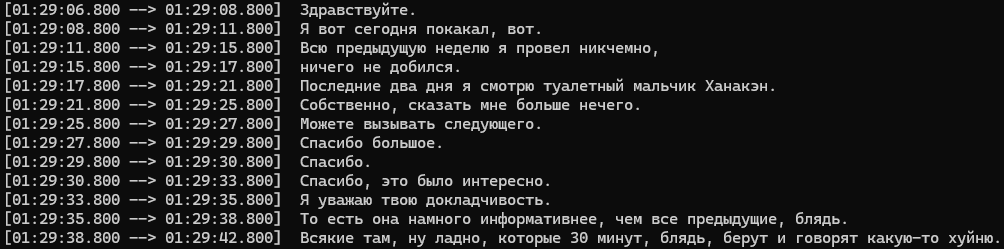 Надо сделать авторазделение по именам говорящих, чтобы скипать неинтересное. Это не только для данной конфы, она хороша как образец, где перебивают друг друга, кричат и используют терминологию.