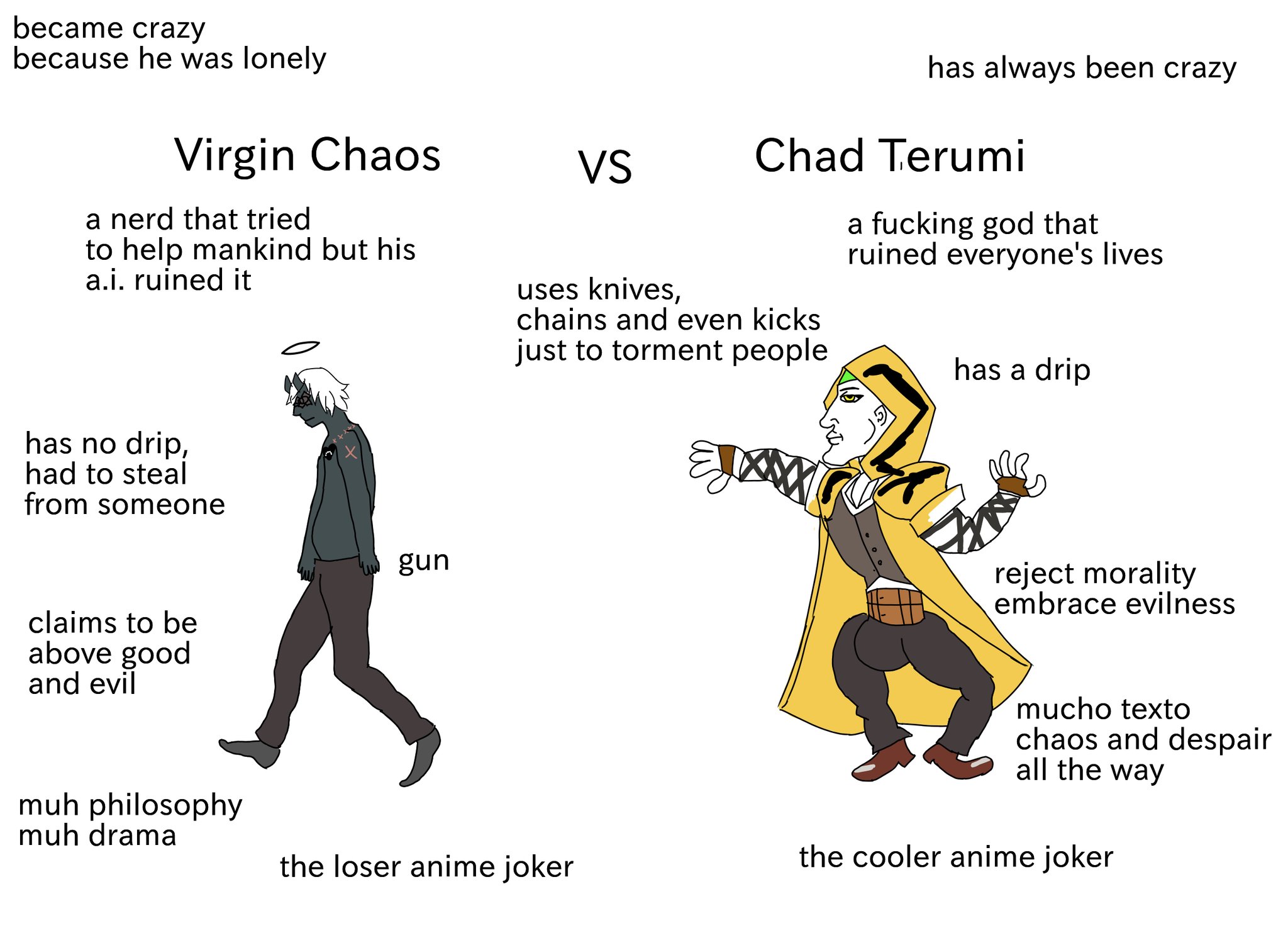 Я хз, вы как будто издеваетесь. Все последние бои даже лоу не давали - стояли срали бесконечно 5А, даже когда блоком отодвигались за рейндж его хитбокса. Я просто стоял и блочил мид 24 на 7. А в остальном... Жаловаться на офенс Наото в матчапе с ТЕРУМИ, ну я хз, это как бы... вы сами-то понимаете как звучит? Если уж я вас так заёбываю как-то, то мб посмотрите на то как Я играю. У Теруми, очевидно, меньше инструментов для офенса и дефенса, чем у Наото, и если я с таким инструментарием как-то побеждаю, то мб вы почерпнёте паттерны какие-нибудь из моей игры.