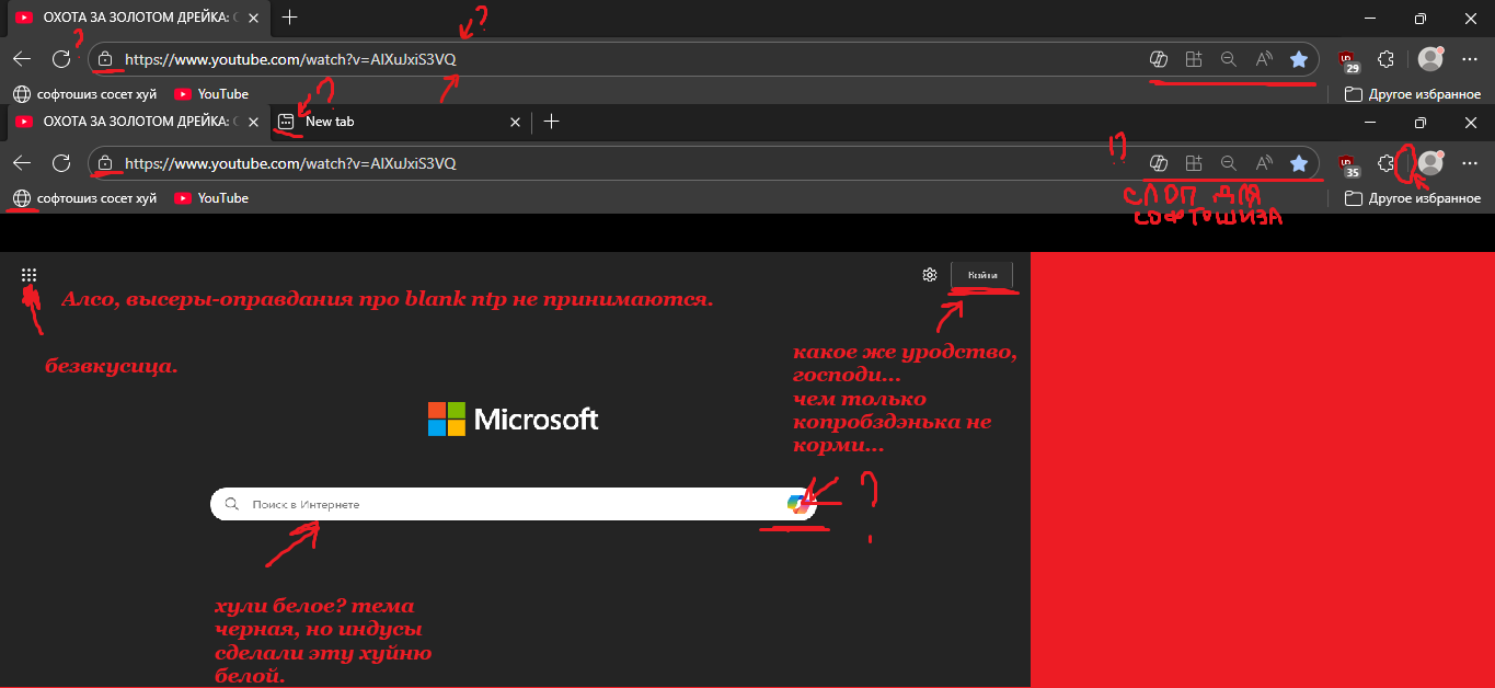 >>1158594 >где реализовано разделение по папкам с тем же удобством, как на Лисе с помощью Sidebery Без понятия как на счёт папок, но в брейве, как по мне, самые удобные вертикальные вкладки. >Найди мне хоть один хромог с нормальным picture-in-picture плеером В брейве все есть. Даже в пердэдже. >Алсо если сама Мозилла не нраится, можно пользовваться Ватерфоксом или Зеном Боже упаси, дефолтный копробздокс лучше всех. Особенно если самому его пердолить. Всякие твои ватерфоксы это лагающее дерьмо, которым смысла пользоваться нет. Зен это вообще отдельный пиздец для отдельной группки тех самых пидорков, долбящихся не в жопу, а в глаза. Типо "красива", "празрачна", "саврименна", "модна-маладежна". На деле это кал кала, пользоваться таким будет самый отбитый кретин.