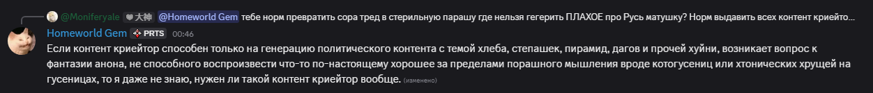 >>1144241 Они там вообще от мира оторваны. Какие-то даги, политический хлеб. Просто пиздец. Даже в этом хлебном треде их полторы штуки. И ведь явно мочух из бредача им рассказал страшные истории про нахрюк и сидит дальше трёт всё подряд, включая гусениц и хрущи.
