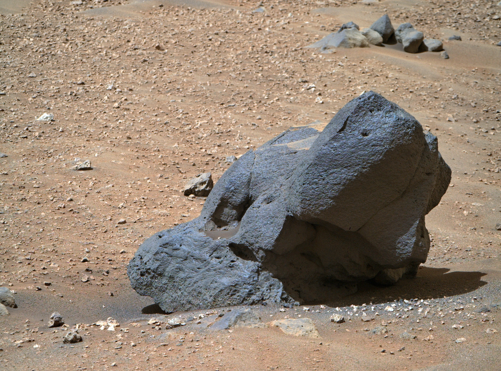 Perseverance нашел кусок скалы с высоким содержанием никеля и железа. Из такого материала состоят ядра планет и астероидов и на поверхности Марса им не место, разве что это метеорит. Яйцеголовые пока не могут с полной уверенностью утверждать, что это метеорит или что-то иное, пока не доставят образцы на Землю.