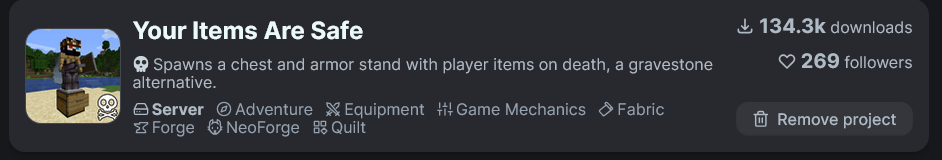 Соответственно, поставил мод на сохранение лута при смерти в сундуках, что бы при смерти терять только опыт.
