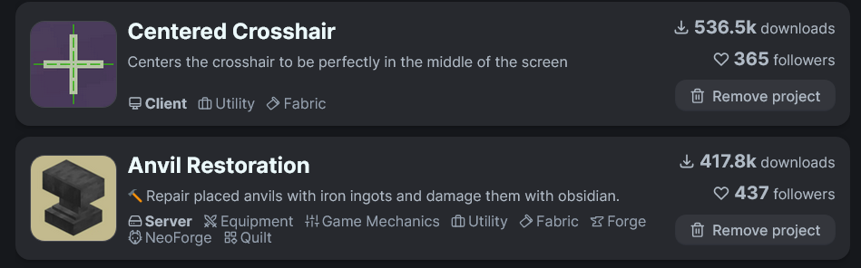 На сайте с модами modrinth можно удобно скачивать и создавать списки предпочтительных модов, потому я пользуюсь конкретно им. Версию я избрал 1.20.1, потому что на modrinth для него больше всего модов, а официальные обновления после этой версии не имеют значения или вредны в моих глазах.