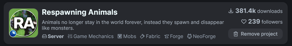 Мод делает животных спавнящимися, как врагов. Так и должно быть изначально, я считаю.