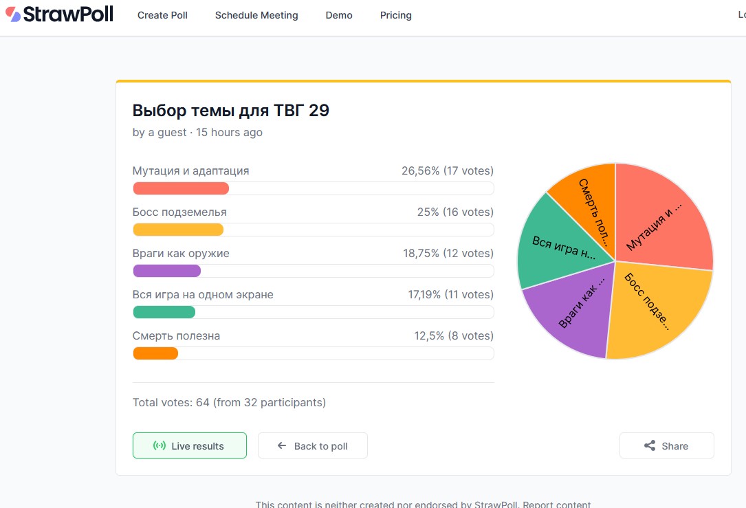 >>1380955 Голосование, же, не только тут. Кроме того, что обязательно будут те, кто его признают подкрученным/нелегитимным. Лучше уже аутсорсить ответственность, тем более что на стравполл внедрили некоторую защиту от абьюза голосований.