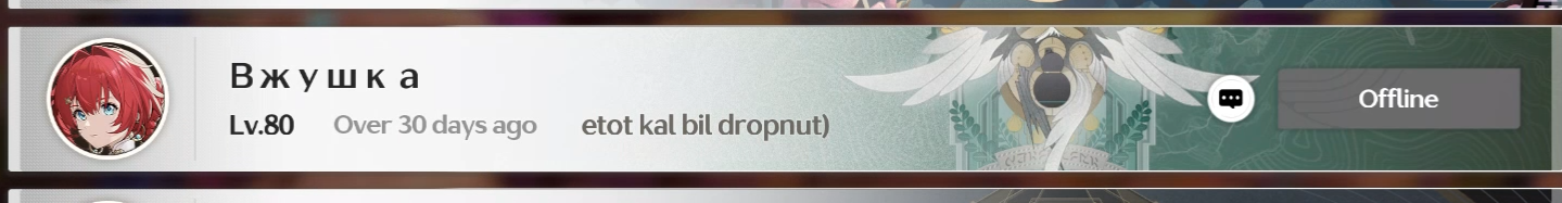 Проблема в том что вы не обсуждаете игру. Никто не хвастается своими успехами в закрытии контента, ни скриншотов, ни видосиков, ничего, тупо шитпост. С тем же успехом вы могли бы сделать тред - фембой общение и делать всё то же самое там, зачем вам треды гача игр? Потому сюда никто не катится. Просто общаться можно и на харкаче, а в местах где обсуждают сами игры обсуждают сами игры и перекат сюда ухудшит обсуждение игры. Всё очень просто.