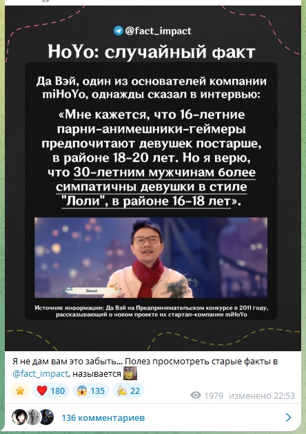 >>1325056 Нет, но смысл играть в игру про аниме девочек без нравящихся аниме девочек? Если честно когда выйдет Азур промилия - я и ЗЗЗ скорее всего дропну, но не Геншин и не Хонкай. Хотя в ЗЗЗ мне нравится боёвка., так что может и не дропну. Но суть в том, что если есть игра лучше - зачем вкатываться в игре похуже? Ладно бы игра была как Дота какая-нибудь, или сингл вроде Мисайда. Но гачи жрут слишком много времени и жалкие клоны Геншина даже до Геншина не дотягивают.