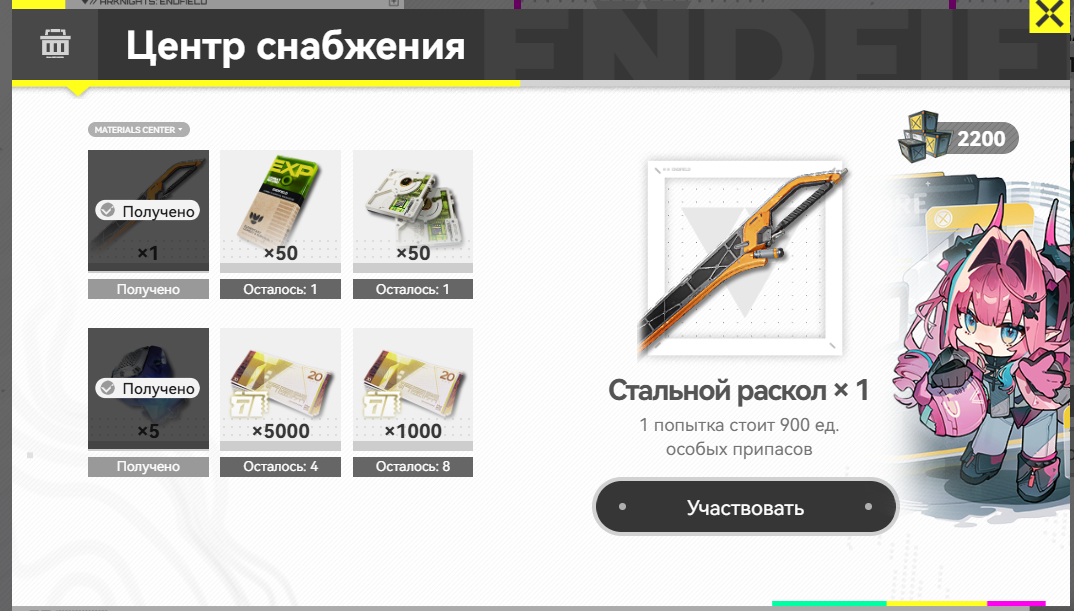 >>1322561 ивент до февраля идет просто хочется залететь в игру через 10 дней уже со всем из ресов кроме прокачки дают легу оружку гарантировано за 10 круток просто каждый день заходишь делаешь задания очки собираешь за них крутишь мне выпало раньше но надо докрутить ради рамочки