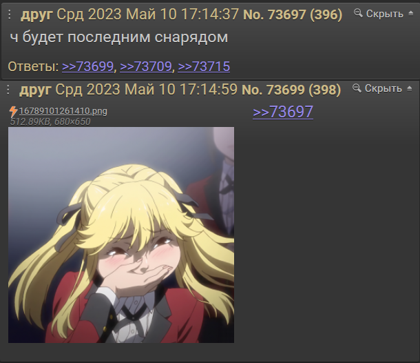 >>1331132 путь был дольше начиная с тредов с б откуда я узнал про диплор потом утонувшие в вг после них последовали треды в соц которые немного прожили и потом уже спиреч со спиреча как он сдох двачрип с него на нульч с нульча на хоро с хоро на синч потом опять на хоро и после него уже ласт параша и ескейп где вот пару постеров остались ну на хоро уже было видно что тред умирал на перекаты было всем похуй максимум это был форс никитоса и с каллоса кто то еще срать приходил потом пока все сидели на синче и прятались от форсеров чбкалича чмод на хоро выдал оп модерку и перенес тред в скрытый раздел где что-то типа подобия того что было на синче было а потом уже сайт закрыли кто куда разбежался на ескейп мало кто пошел многие тогда насколько помню решали выбрать парашу каловоды но не получилось впрочем часть каллора что любила абсуждать игру осталась там уже давно и у них что то типа конфы есть не вкурске об этом