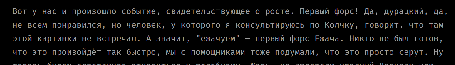 Удручает конечно ситуация с дудосингом борды. Но все в конечном счете будет норм. Замечательный проект. И еще этот раскол в чятике, придется на один тред больше в избранном держать. Щито поделать, десу, но я понимаю Принцессу йоу. А вы как, анончики? Подрячком? Не считая невыносимой погоды, конечно, от которой не эскапироваться и в четырех стенах.