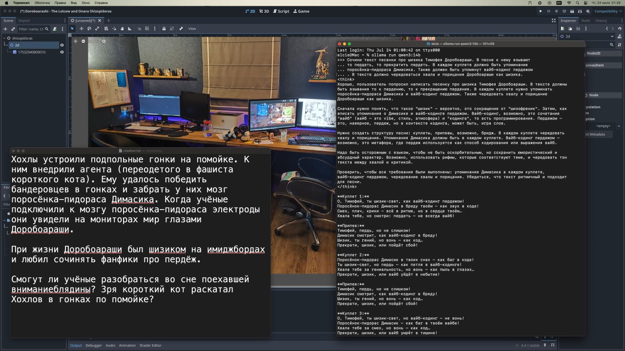 >>1003637 Если пройти Doroboarashi Onara Shizopidoras то фотки ирл дочки Котла начнут спавниться (которые зарипали из его шизоигры про Котёл с твоеих скринов)