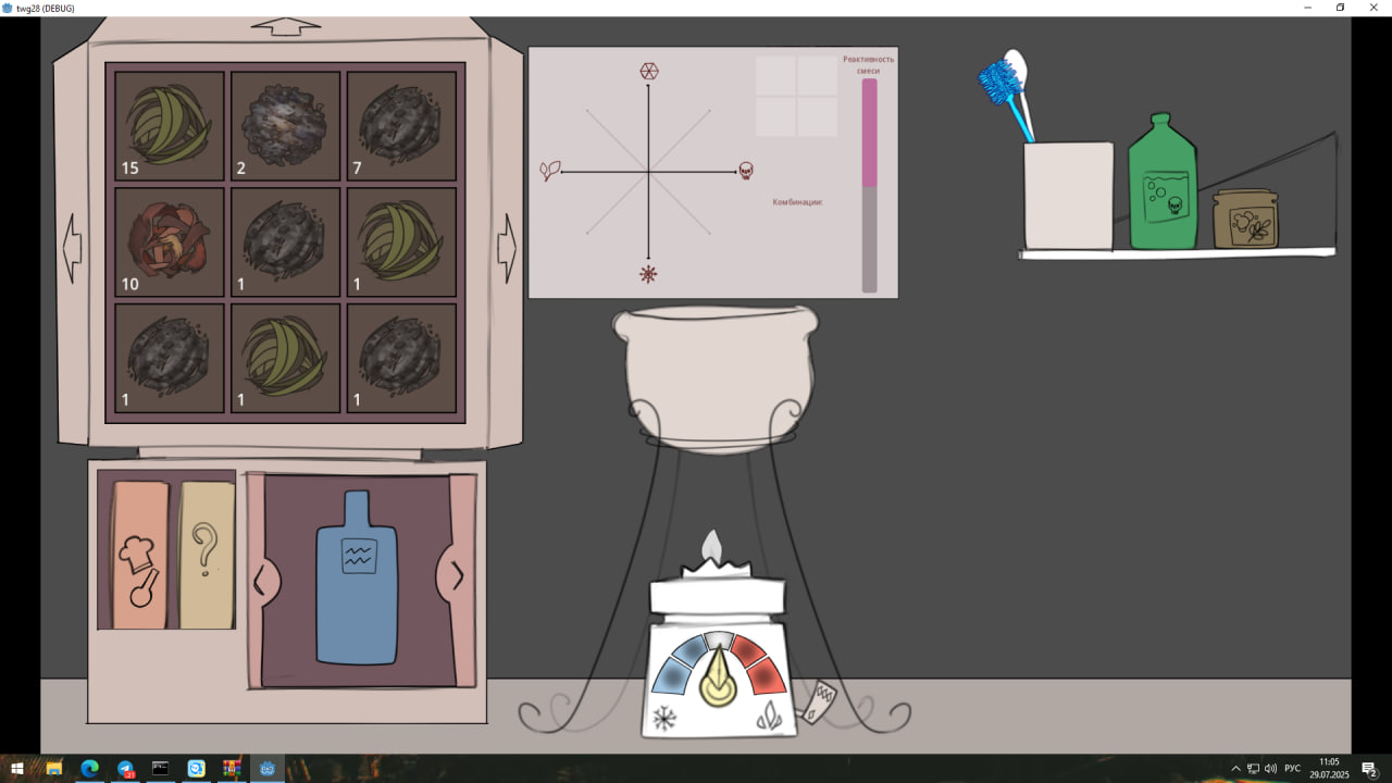 >>997634 Вместо всего этого кринжа, сделай клон Вололшебника (то есть potion craft), только чтоб всякие котлы и димасики приходили как покупатели зелий.