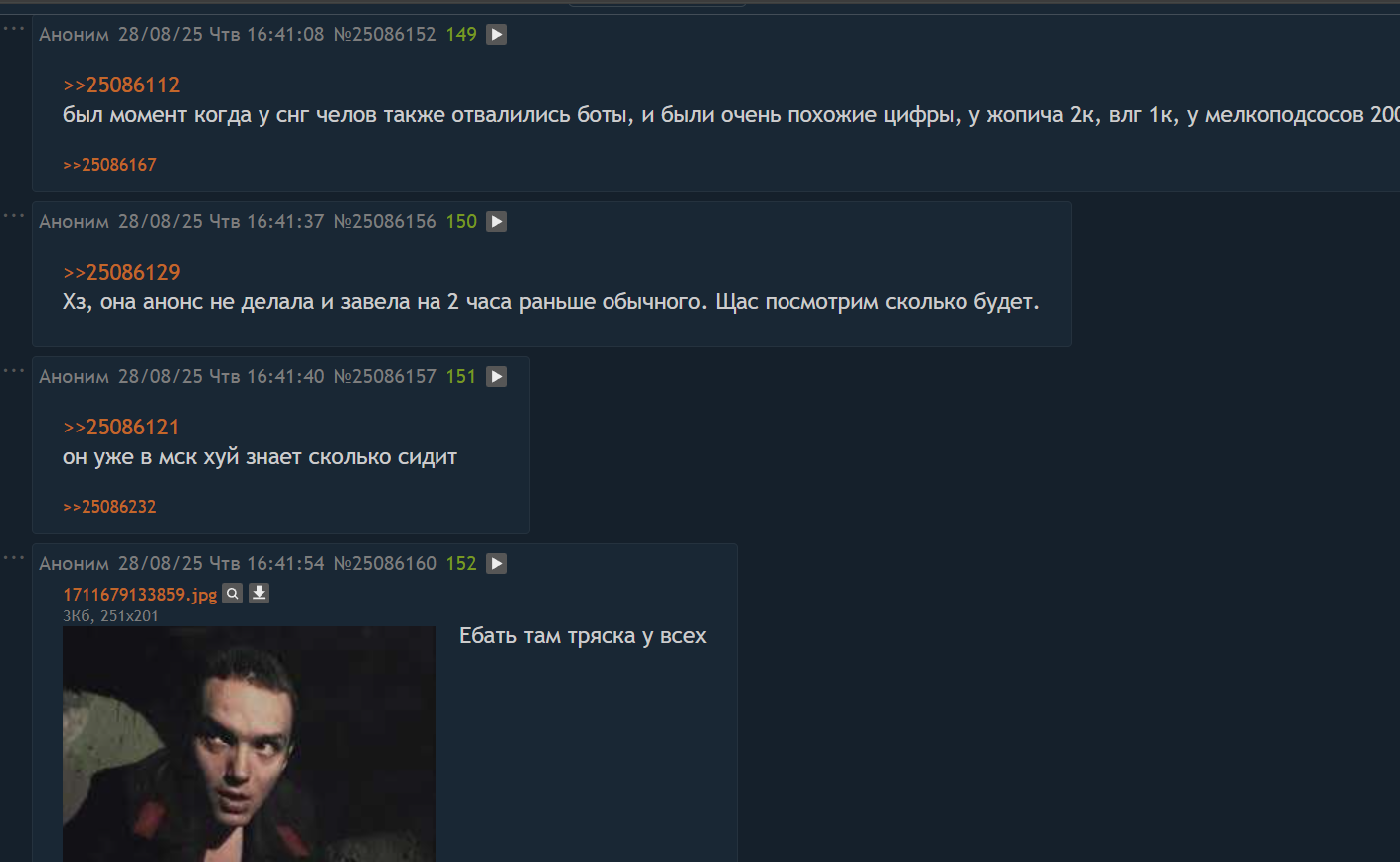 сидел в фаге когда к компу доступа небыло, там просто весь тред скрины каких то стримерш и 10 реплаев "ахуй" "трахать" "сисик видно" и обсуждение их теневых