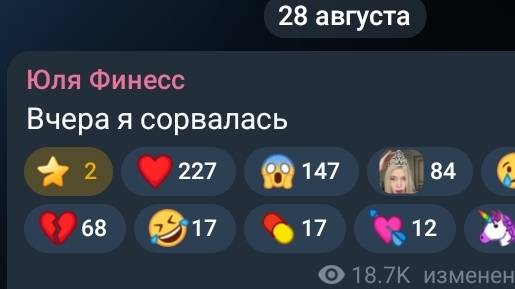 >Всем привет. Видели, что на твиче происходит сильно онлайн у всех упал пересчёт, пересчитывают как-то зрителей я ещё не стримила. Я не знаю, че у меня будет. Ну че, нам, да. Малюткам, что 100 зрителей, что 50 разницы большой нет. Правильно, правильно. Пофиг. В остальном, конечно, ситуация интересная. Будем выживать ауками теперь. Хотя че мне? Я работаю? Я нормальный человек, у меня есть заработок, помимо стримов. У меня как бы всегда запасной вариант есть. Я учёный. Я игры делаю, я вообще не пропаду. Хоббихит стримы для меня хобби чисто покрасоваться, покривляться. Так что я не в зоне риска. В любом случае сегодня, ребята. Сегодня, ребята, будет стрим по бадминтону. Я сегодня с папой Иду на тренировку по бадминтону. У меня папа занимается бадминтоном, ходит, играет, и я сегодня пойду. Он будет меня учить играть в бадминтон. Постараюсь постримить это. Так что приходите. Поддержите меня, давайте попробуем побольше онлайн собрать, чтобы все такие, о, вот Лизон, вот Лизон молодец, вот у Лизон онлайн даже больше стал. Ладно, все, давайте. Всех буду ждать. Напишу ещё анонс. А так вообще заходите ещё в чатик наш вот, который к комментариям прикреплён. Вот, который в предыдущем посте я рекламирую, там можно всякое болтать, обсуждать. Ставьте лайк на это сообщение голосовое, можно на голосовые сообщения ставить лайки или нельзя? Ну, в любом случае. Вы молодцы, я вас люблю. Я буду скоро играть в бадминтон в 8 часов. Это будет где-то все.