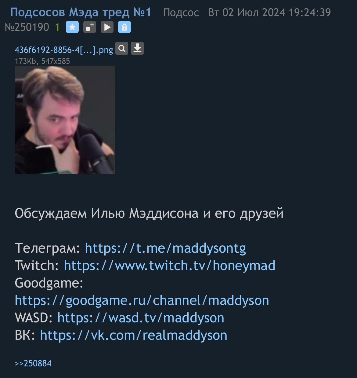 Тред обсуждения Ильи Безумца (mad) №1234 Подсос  Ср 02 июл 2025 13:27:59 955754 1