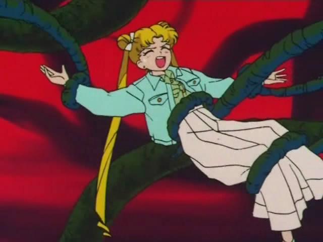 На секунду девушки могли заметить лица похожих на них которые располагались в креслах кинотеатра. Как только лица расположились луч озарил экран и лица растворились за его ярким светом. Фильм начался. Девушки видели изображения с небольшими помехами: Суисейсеки, Макима, Сэнто и другие - словно отрывки из недавних событий снятых кем-то на камеру. Показ случайных сцен с их участием прекратился когда их смыло непонятно откуда взявшей наступление водой. Их будто выпихнуло из кинозала в бесконечное, огромное пространство без пола, потолка. Вокруг проходило несчитанное число кинолент с картинками. - Макима! Держись! Усаги схватилась за руку девушки. После чего обе обнаружили себя лежащими на твёрдой поверхности. Пол и потолок отсутствовали, ленты проходили по всюду образуя очень сложную сеть - и казалось что пространство не имело конца. - Скучно. Да? Неожиданно услышав эти слова девушки обнаружили третью лежавшую чуть подаль от них одетую в школьную форму. - Поднимайтесь. Потянулась обратив свои голубые глаза на них - Мегу, знаешь твой план был забавным. Сказала девушка без эмоций.