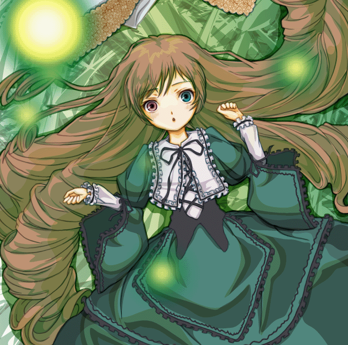 На ладони Суисейсеки появился небольшой дух, того же цвета, что и её платье и поднявшись вверх, над её головой, принялся блуждать по коридорам, также в попытках найти одно из зеркал, с помощь которого кукла сможет связаться с кем-то из своих сестёр.