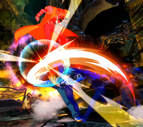 Be aware when using in blockstring as there is an 8F gap between Jagai and this, during which you can be hit by any 5A or most Anti-Airs. With Zaneiga (which blows up standing attacks) this is a natural high-low mixup, although it can be jump guarded easily.