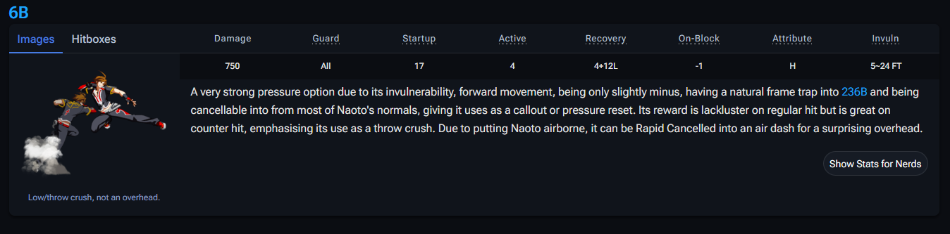 >Disclaimer: Naoto can be played effectively without the usage of high damage combos due to his straightforward gameplan and strong but simple pressure. It is recommended to focus on learning fundamentals such as pressure, neutral and defence rather than focusing on learning difficult combos. Ofc