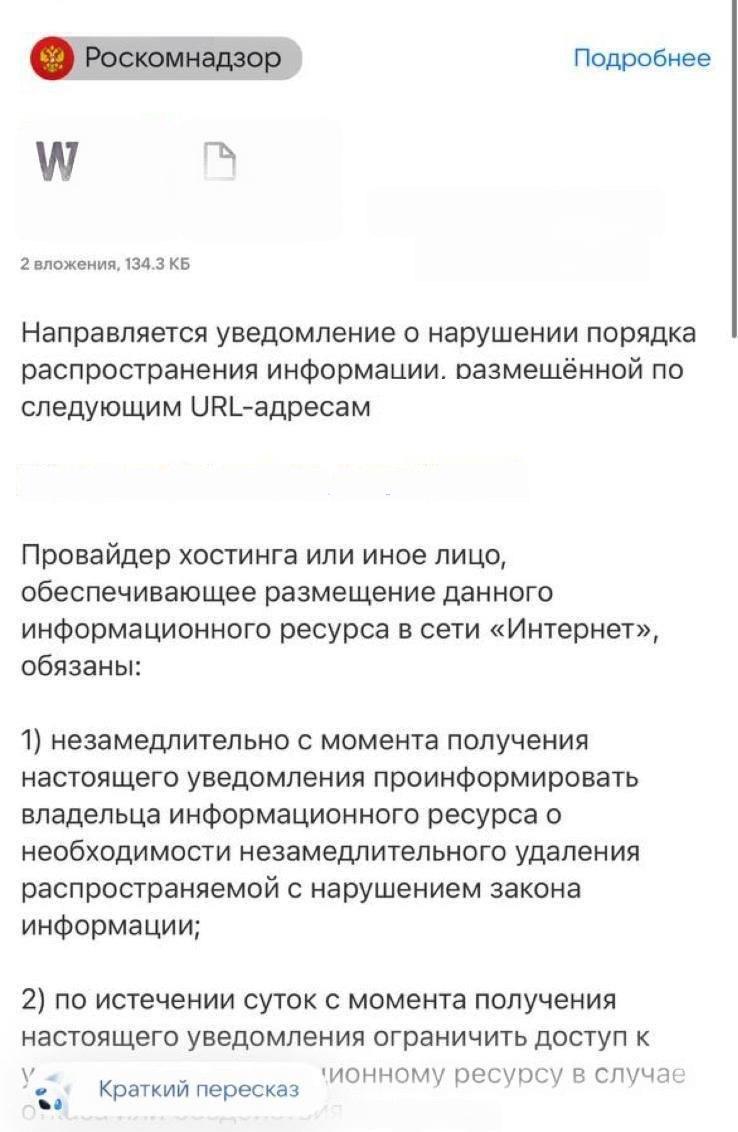 Владельцам телеграм-каналов, зарегистрированных в его реестре, рассылаются официальные уведомления с требованием удалить такие материалы как «дестабилизирующие общественно-политическую обстановку». Отказ грозит административной и уголовной ответственностью.